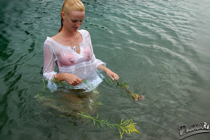 Славненькие сисечки у этой рыжей девушки в речке плескающейся!