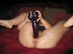 Женщина любит раздалбливать свою киску ну очень большими предметами. После них и рука спокойно входит