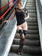 Милая девушка в одиночестве открыла свои прелести катаясь на эскалаторе.