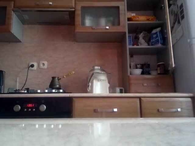 Сварила кофейку ну и по ходу мандой и сиськами засветила,тельце в норме и попа аппетитная