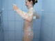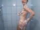 девушка в душевой моется и показывает свои не одинаковые сиси