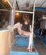 Стройная девушка сверкает своей киской в старом автобусе.