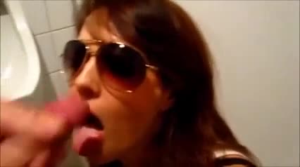 Очень симпатичная и милая девочка сосёт член в туалете подставляя в конце своё личико под выстрел из спермы.