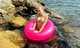 Красотка с дредами выбралась на море. Катается голой на круге.