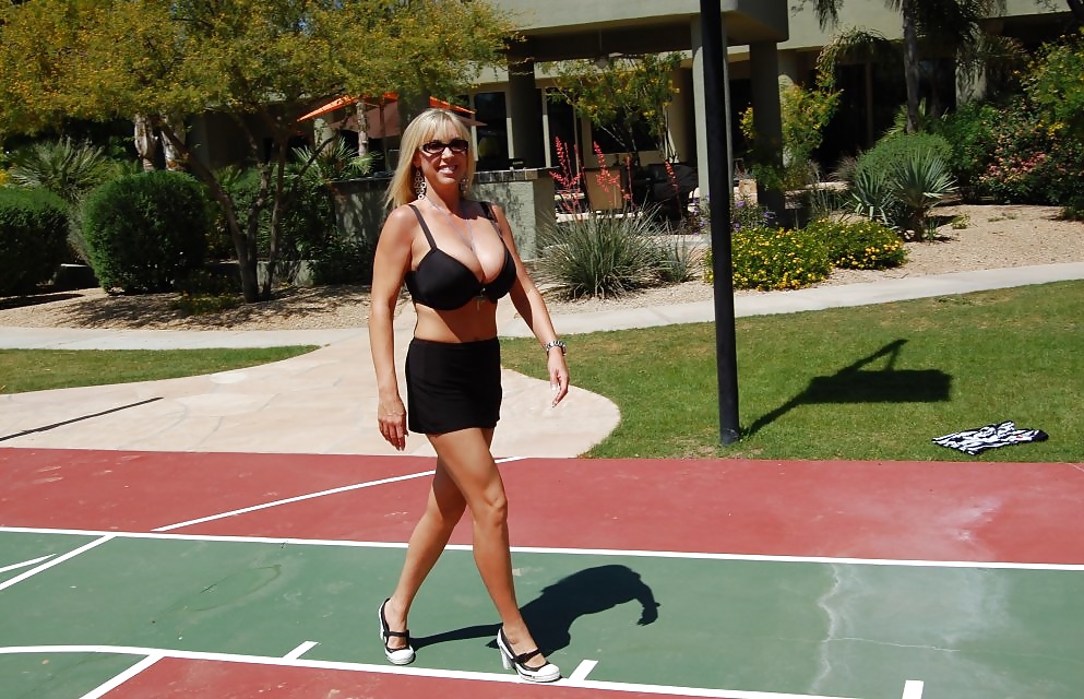 блондинка на баскетбольной площадке