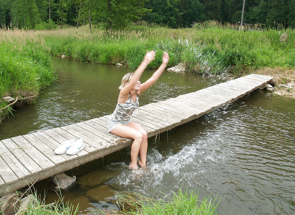 красотка на деревянном мостике