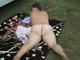 сначала Вика загорала в купальнике,а потом,оглядевшись и видя,что никого поблизости нет,решила снять купальник и загорать нагишом