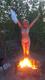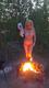 Скорее это не вечер, а часов 16-17. Такой вечерний эффект на фото порождён пламенем на переднем плане. Это однако нисколько не умаляет женских достоинств.