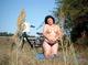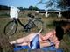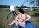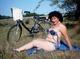 Приятная голенькая велосипедистка. Выехала на природу с игрушками. ;)