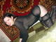 пиозирует на фоне классного персидского ковра