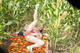 Озорница спряталась среди зарослей кукурузы и развлекла свои сладкие манящие отверстия увесистой игрушкой