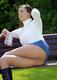 Красивая девушка неспешно отдохнула на свежем воздухе. А заодно посветила колготками без трусиков.