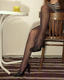 Прелестно выглядит стройняшка в черных колготках и маечке под зебру!