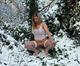 Блондинка с шикарной попкой и накаченной силиконом грудью позирует в заснеженном парке. В шубке, чулках и сапожках.