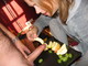 Весьма оригинально. Пробует и с яблочком и с виноградом. Но все-таки лучше и вкуснее, когда со сливками подача фруктов.