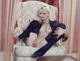На белом кресле красивая девочка показала свои новые чулочки и прекрасное тело