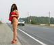 Молодая, но борзая и смелая чика, показывает интимные места водителям, чтобы её быстрее подвезли туда, куда ей надо.