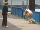 Народ с интересом наблюдал за такой голенькой девочкой.