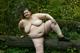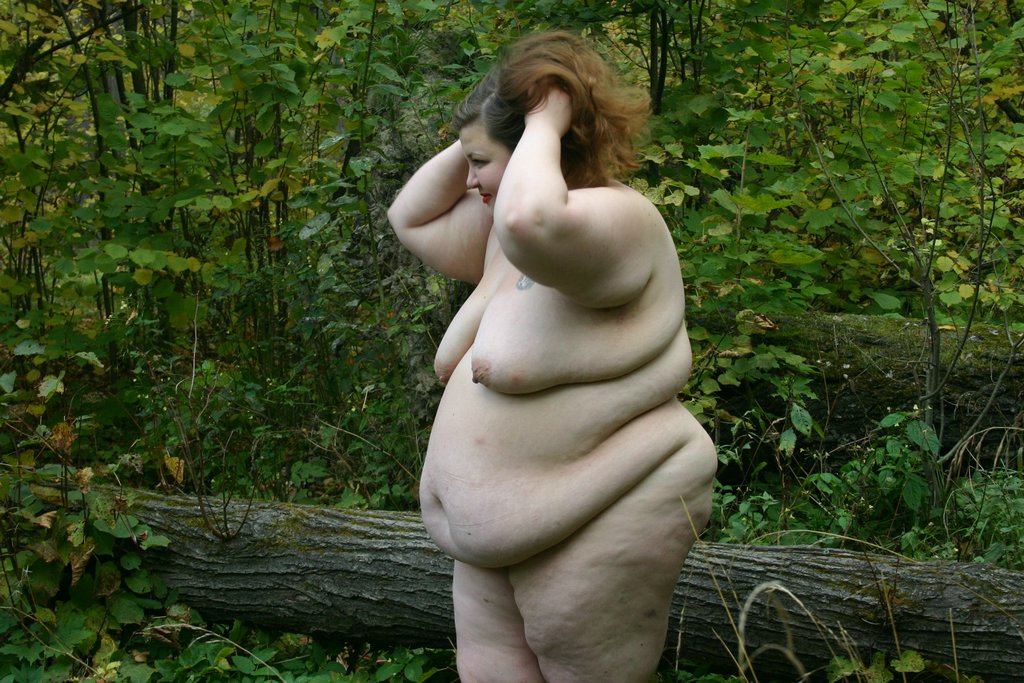 Необъятных размеров дамочка позирует на свежем воздухе