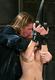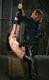 Спектакль начинается тем, что садист начинает ласкать девушку, а потом хлестает плеткой, продолжая любить её звериной любовью и в конце этой части подвешивает за руки.