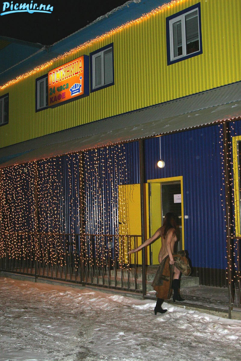 Стройная красотка сняла шубу и перед нами шикарное тело девочки
