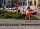 По городу гуляет и позирует чернявая куколка. На нет ничего, кроме легкого платьица.