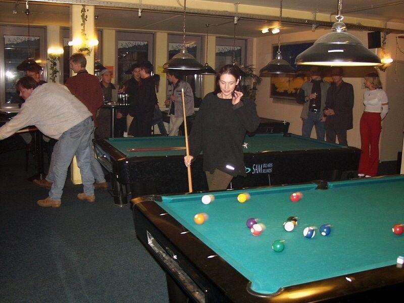 Две девушки доигрались на бильярде.