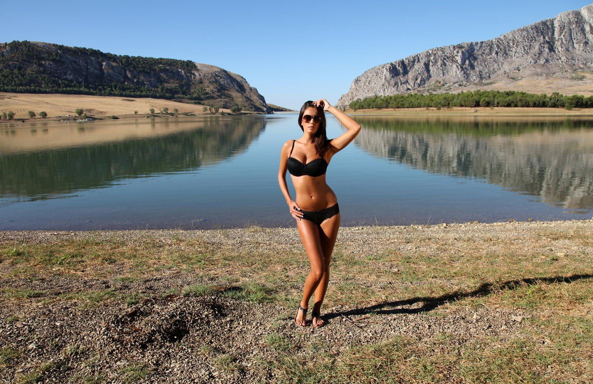 Вот так в одном месте слились две природные красоты. Красота прекрасной, идеально загорелой девушки и красота морской природы !