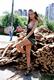 Раздетая брюнетка в городе