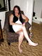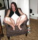 демонстрирует свою бритую киску раздвигая свои ножки на кресле.