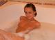 Юная малышка нежится и позирует в ванной.