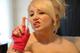 Блондиночка весьма сексуально позирует для народа.