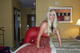 Темпераментная блондинка в умопомрачительной красной сеточке колготок.