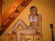 Классно позирует блондинка на лестнице и комоде.