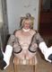 Зрелая блондинка позирует на кухне.