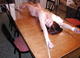 Связанная на столе женщина возбуждается всё больше и больше от собственной беспомощности в ожидании секса.