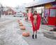 Девочка в красном на прогулке.
