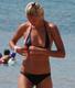 Девушке на пляже не совсем подошел купальник по размеру.