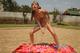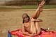 Девочка загорает.