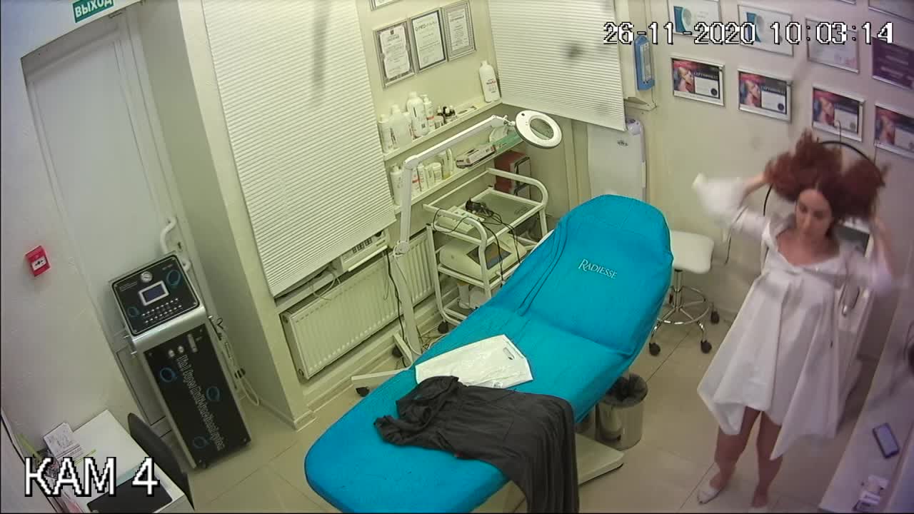 Возбуждающе переодевается косметолог на своём рабочем месте!