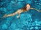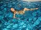 Блондинка купается в бассейне дожидаясь своего бойфренда