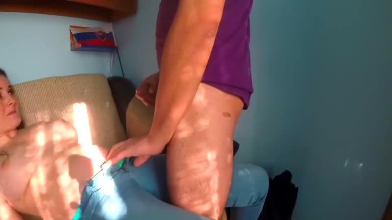 Достойный минет на диване с финалом на лобок