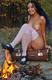 очень сексуальная девушка в белом нижнем белье, обнажается в осеннем парке