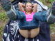 Сколько руки высоко не поднимай. А грудь уже провисла. А вот играются в полумраке в постели. Очень она весела.