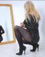 Снимает колготки перед зеркалом