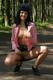 Симпатичная девушка гуляет по парку без лифчика.
