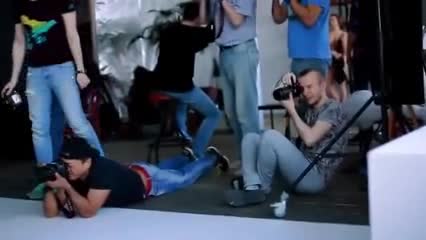 Очаровательная девушка, голая, в окружении объективов фотокамер