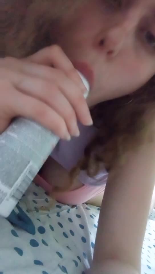 В отсутствии члена пришлось ей насадиться своей пиздёнкой на флакон с дезиком и получить секс наслаждение!
