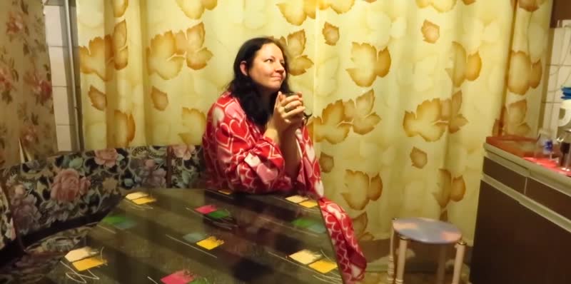 Подруга расписного братка устроила на столе бодрую почесуху лохани