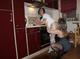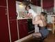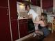 Две дамочки преклонного возраста развлекаются на кухне ануслингом.